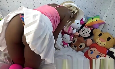 19 year old chesty webcam girl with innocent face touches her big natural ti