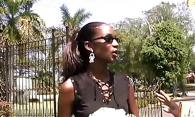 Busty ebony babe gets her bum busted.