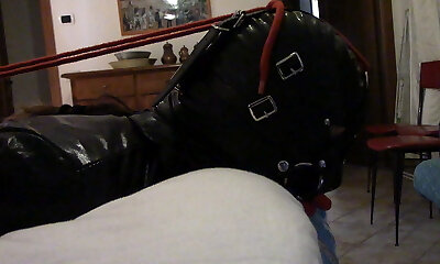 Latex Rubber Catsuit And Rope Bondage: Hot Blonde Milf Trying To Escape And Masturbate Moist Pussy