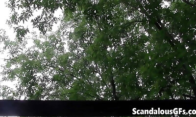 My nymph letting her shaved twat in the cool off outdoor breeze
