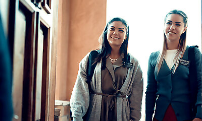 Alyx Star and Natasha Lovely have passionate lesbian lovemaking on the bed