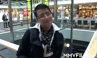 Winsome dark-haired asian teenage harlot Kathy gives a magic blowjob