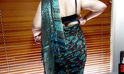 Hot Indian Wife Draping Sexy Saree and Sleeveless Blouse - AROUSING and Glamour - Orbs Play