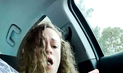 Blonde Pristine with yam-sized boobs pleasuring her fuckbox in the garage