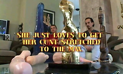 Whore taking huge fake penis in her cunt