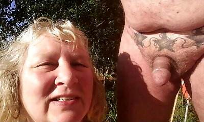 Watch my milf wife with big congenital tits stripping outdoors - naughty exhibitionist fun