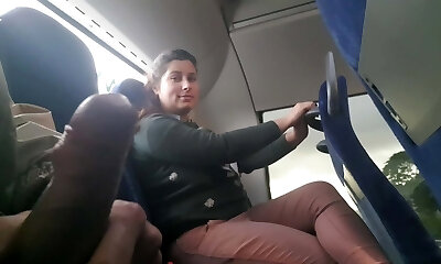 Voyeur tempts Milf to Suck&Jerk his Pink Cigar in Bus